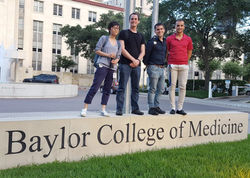 ![]() Outside Baylor College of Medicine. Asuka (far left), Tyler (left), Francois (right), and Hussam (far right). July 2016. |